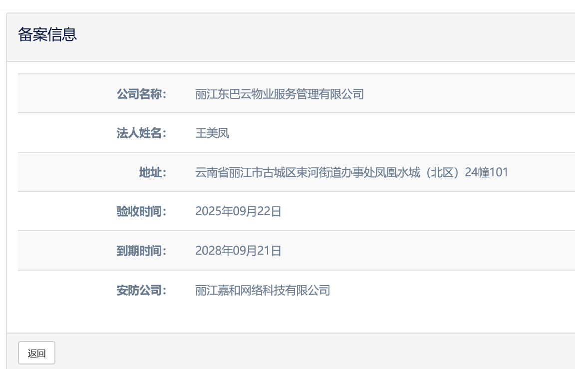 關(guān)于麗江東巴云物業(yè)服務(wù)管理有限公司電子監(jiān)控安防合格證下證通知