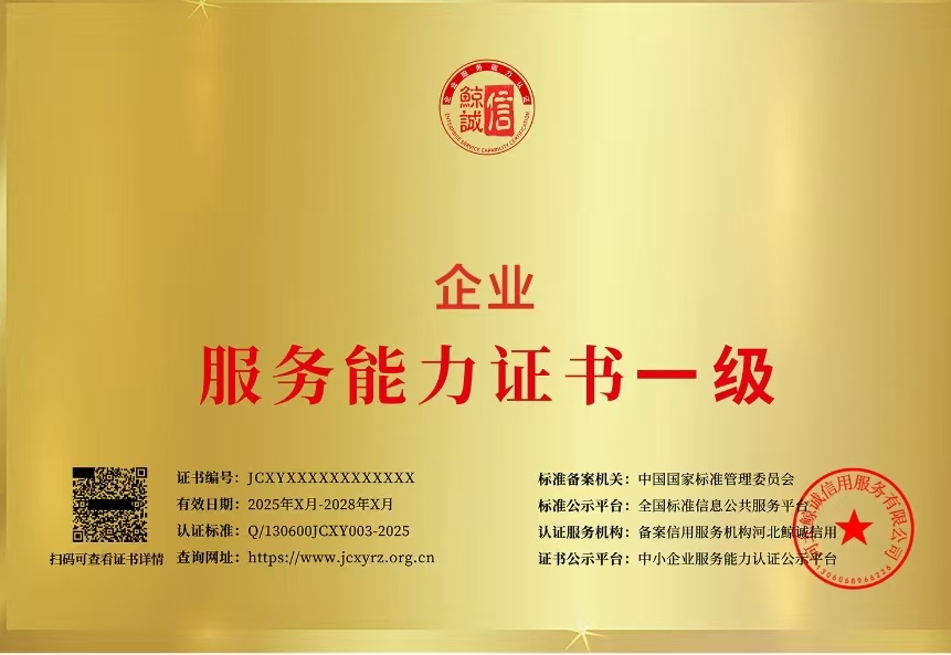 熱烈慶祝我司榮獲企業(yè)服務(wù)能力證書一級(jí)